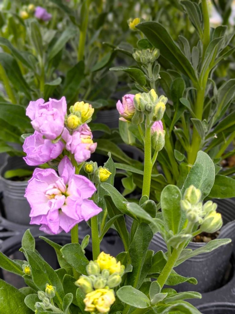 一般的には、まだ葉っぱだけの状態ですが、今入荷しているラックスは「冷蔵処理」といってラックスの球根に寒さを感じさせる処理を行っていて、いまを春だと勘違いをさせて花をたくさん咲かせている株たちが並んでいます。