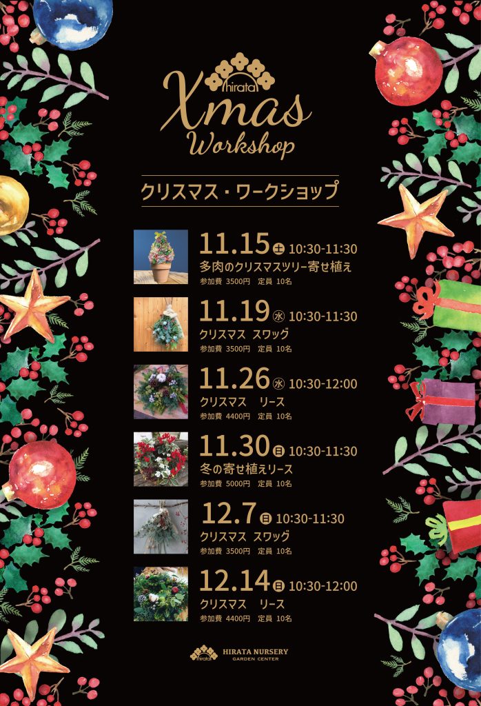 今年もHirata Nurseryでは、クリスマスにぴったりのワークショップを開催します!