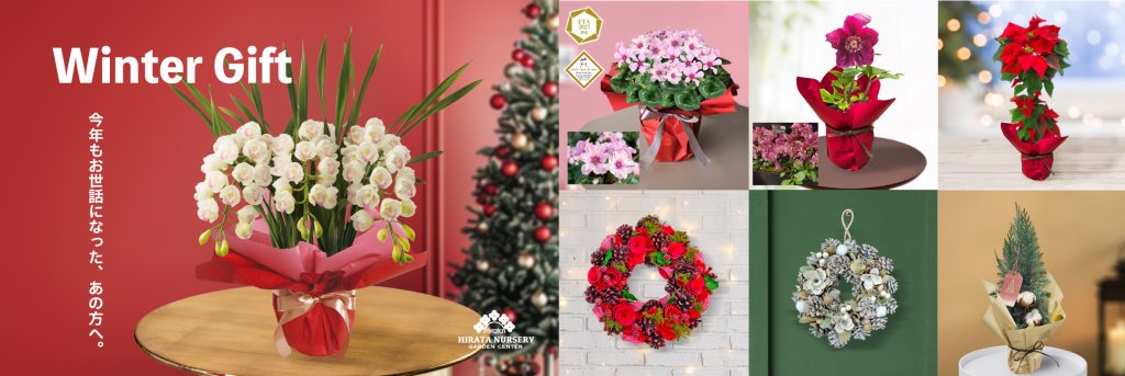 平田ナーセリーオンラインストアでは冬におすすめの鉢花や生花アレンジなどのご予約を開始しました。