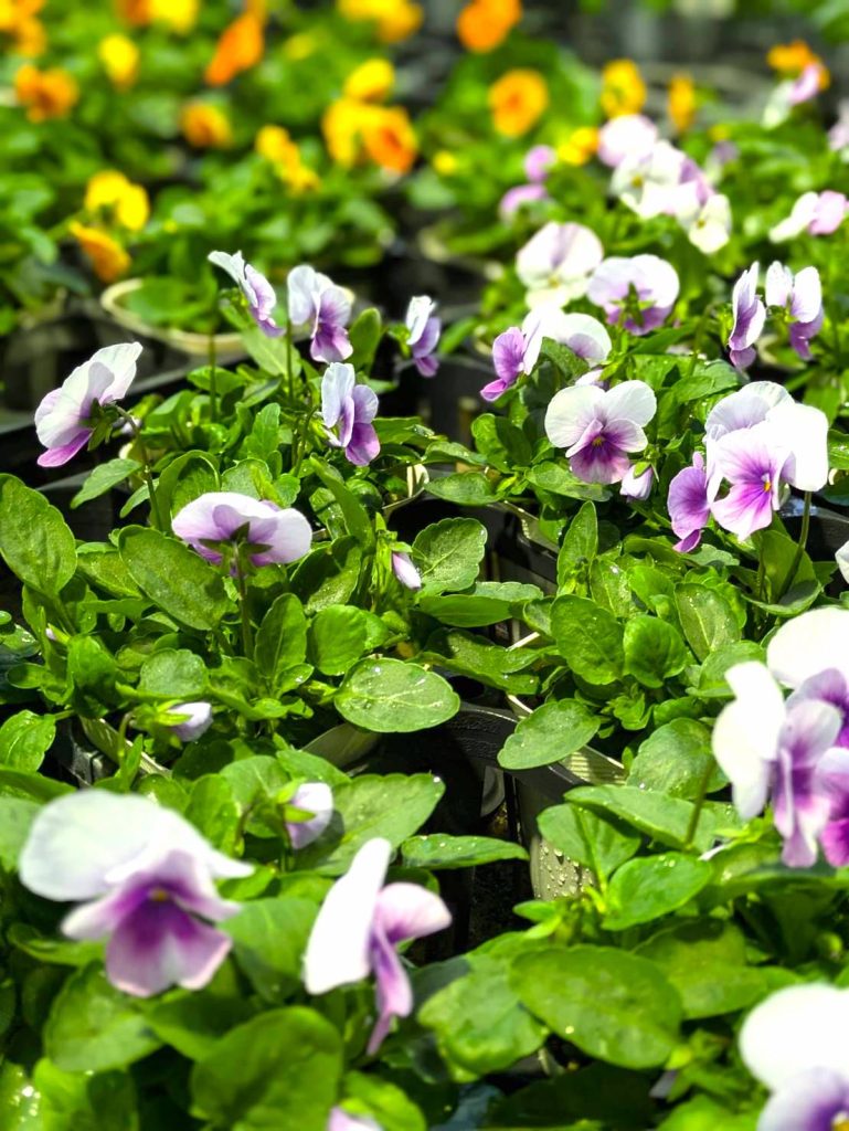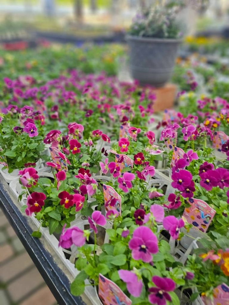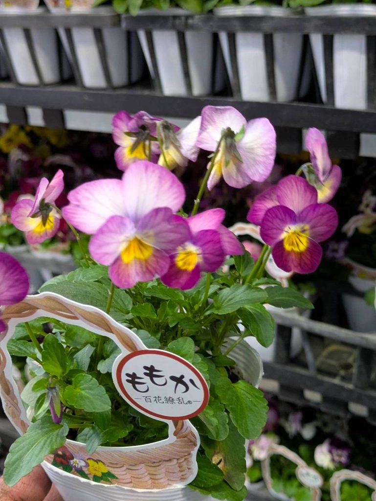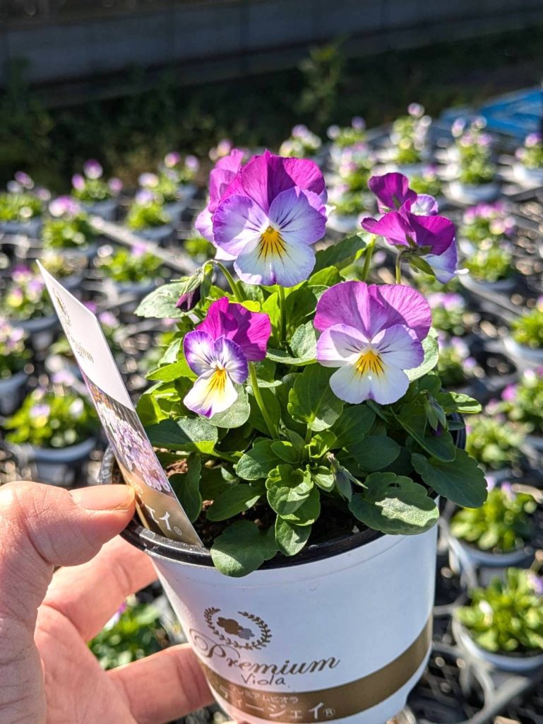 平田ナーセリーの自社農場で生産された【ワンペアビオラ】や【ももか】など毎年大好評の品種や、プレミアムビオラの【ディージェイビオラ】もたくさん並びました。