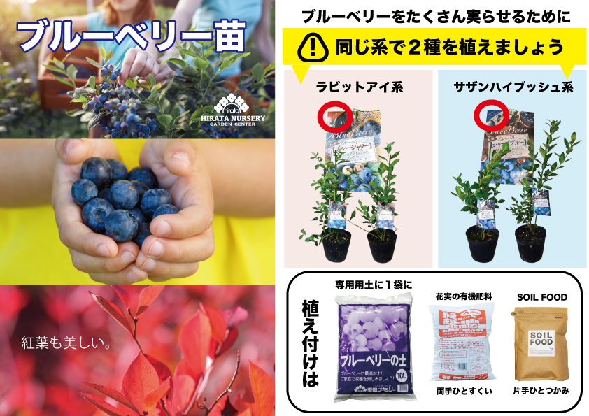 ブルーベリー専用用土やオススメの肥料も販売しています。ぜひご覧ください。